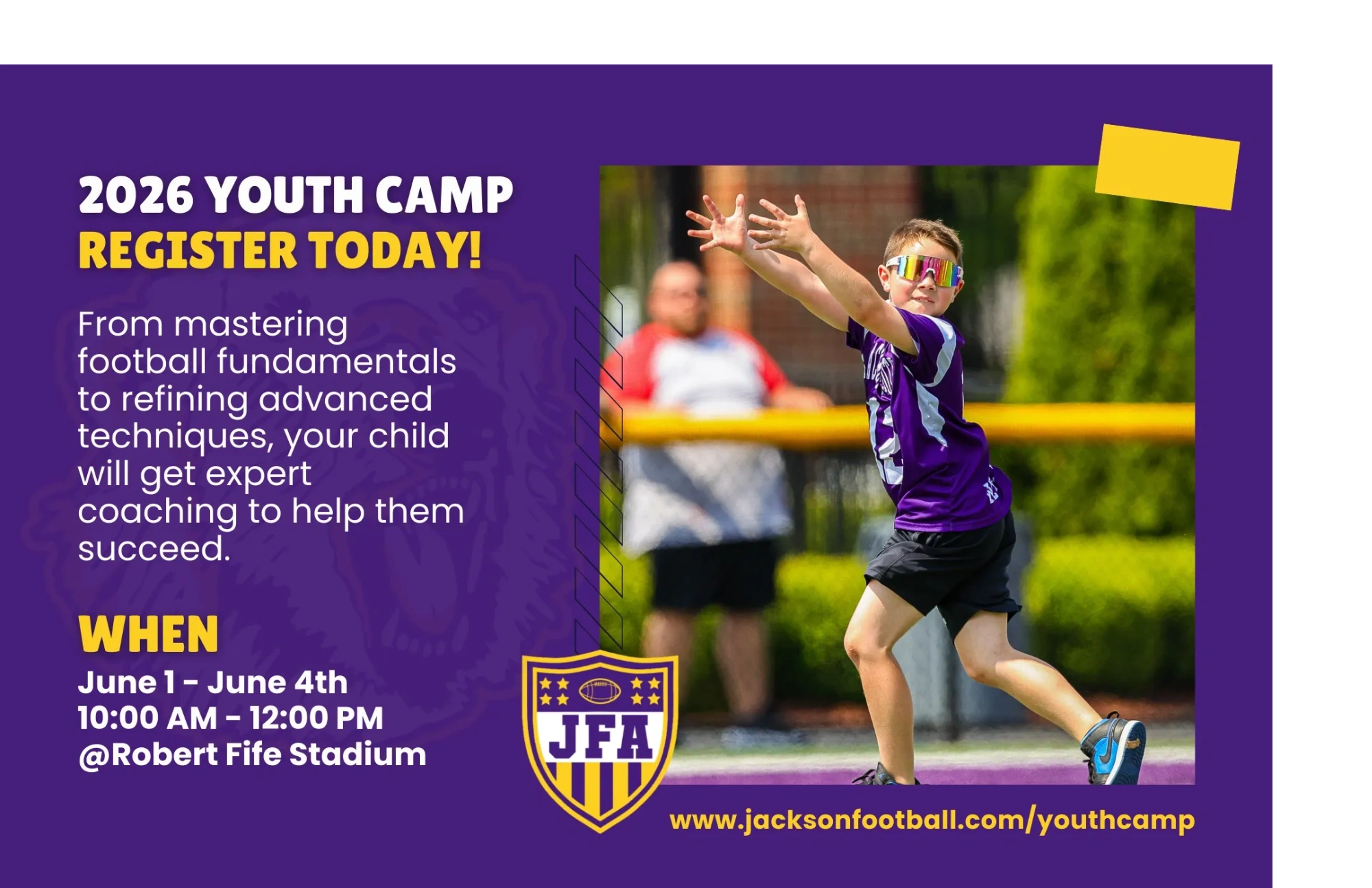 Young athletes will take part in an exciting, hands-on camp focused on teaching the core philosophies, techniques, and drills that power the Jackson Football program. Don’t miss your chance to train like a Polar Bear and get ready for the season ahead.